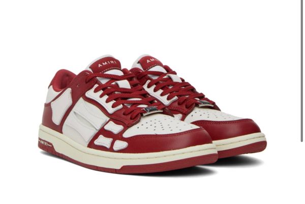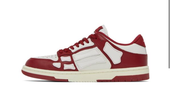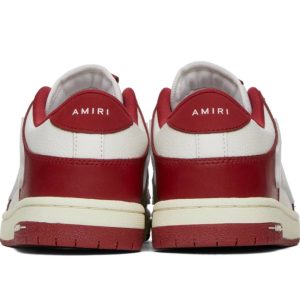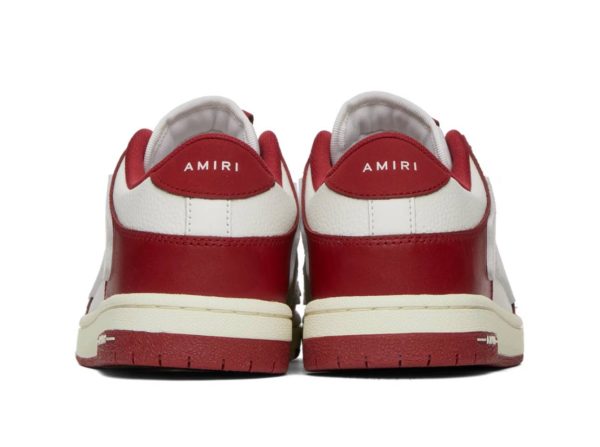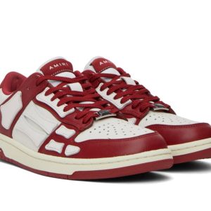 The AMIRI Skel Top Low in White Red is a stylish sneaker featuring a combination of smooth and pebbled leather in its upper construction.