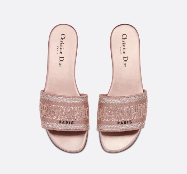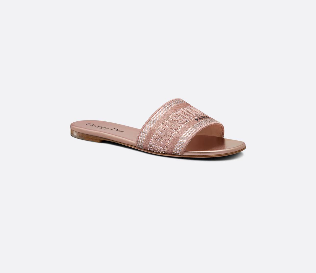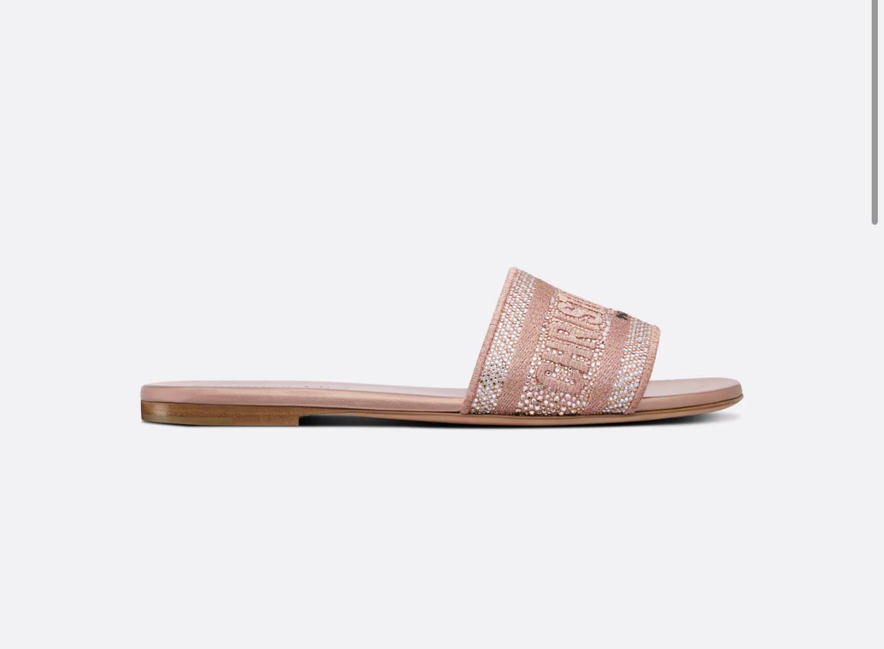 The Christian Dior Dway Slide is a sophisticated and versatile pair of slides from the renowned luxury brand. These slides feature an elegant embroidered cotton upper, providing a classic and timeless look.