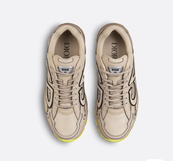 The Dior B30 sneaker is a part of Dior’s Spring 2022 footwear series designed by Kim Jones. It is a casual running sneaker that combines elegance with a sporty aesthetic. The sneaker features premium materials such as hi-tech mesh and leather uppers with metallic piping accents, giving it a contemporary and luxurious look.