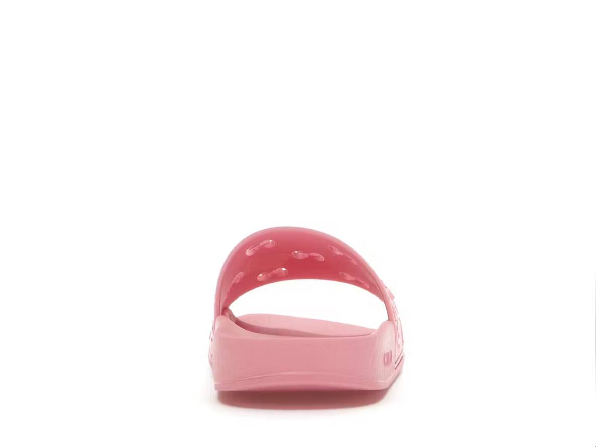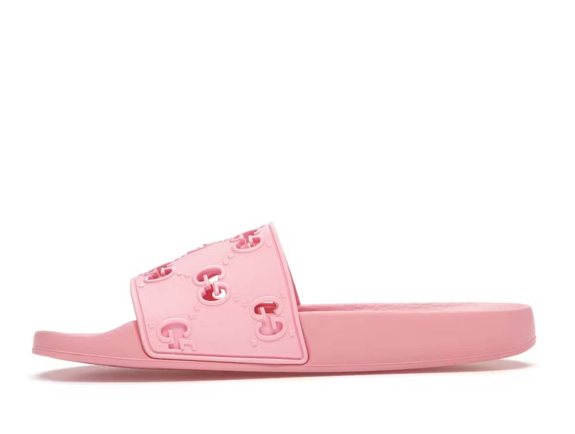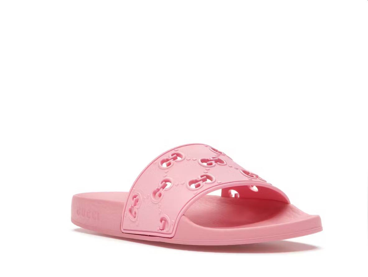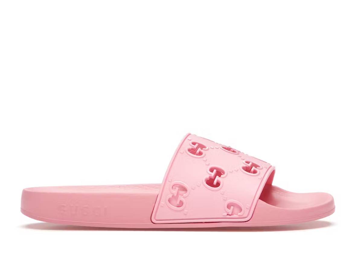The Gucci Rubber Slide is a women’s sandal from Gucci featuring the iconic GG logo design. The slides are made of rubber material with vibrant colors giving them a stylish and trendy look. They are designed as slip-on sandals for easy wear and feature a rose pursuit theme, adding a touch of elegance to the overall design.