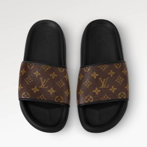 The Louis Vuitton Waterfront Mule is a luxurious and stylish slip-on sandal designed by the renowned fashion house Louis Vuitton. These mules feature the iconic LV monogram canvas on the upper strap, showcasing the brand’s signature design. The Waterfront Mule is crafted with high-quality materials and meticulous attention to detail, reflecting Louis Vuitton’s commitment to luxury and sophistication. These mules are known for their comfort and style, making them a popular choice for those looking to elevate their footwear collection with a touch of elegance.