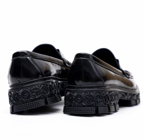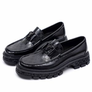 Louis Vuitton’s Monogram loafers are a stylish and authentic choice, available in plain leather and plain toe styles. The iconic monogram design adds a touch of sophistication. These loafers are versatile and timeless, suitable for both men and women. Made from high-quality plain leather, they offer durability and comfort. They are most popular wearing