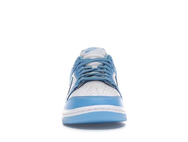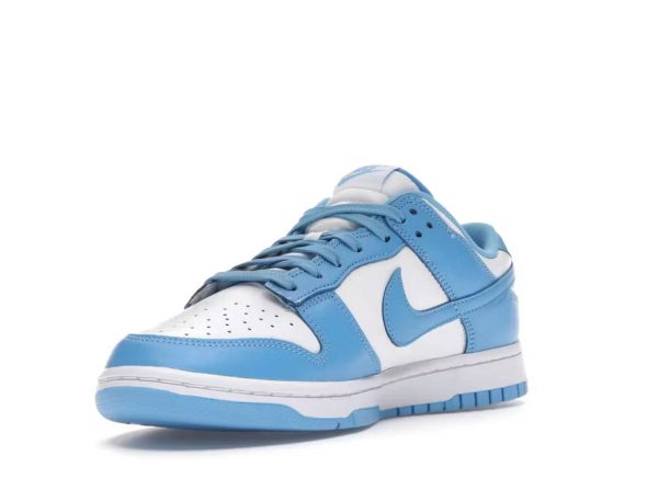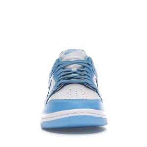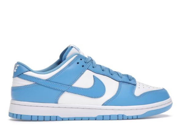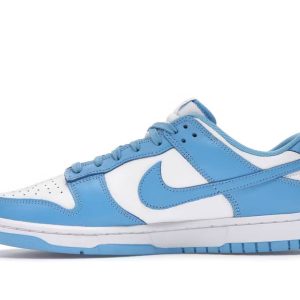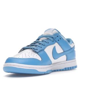 The Nike Dunk Low “University Blue” is a sneaker model that draws inspiration from the original 1985 design. It features a classic color scheme with smooth white leather uppers and overlays in a vibrant blue hue from toe to heel. The branding accents are also in University Blue, creating a cohesive look throughout the shoe. This iconic silhouette has been well-received in previous releases and is known for its trendy and street style appeal.
