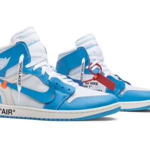 The Off-White Jordan 1 Low UNC is a custom sneaker inspired by Virgil Abloh, featuring a University Blue colorway. These sneakers are based on the Jordan 1 Low Golf UNC model and are designed to be eye-catching and stylish. The shoes come with either KICKSBYN8 or OFF-WHITE side writing options, professionally painted, modified, and sealed for durability. They are packaged in a custom “JUMPMAN” box, making them a standout piece for sneaker enthusiasts.
