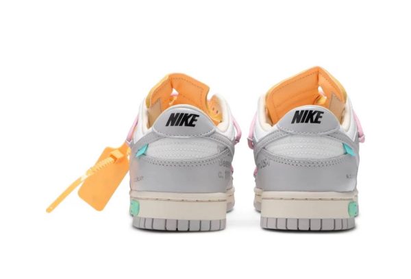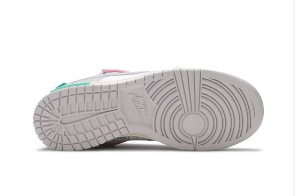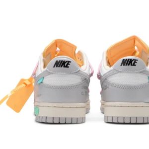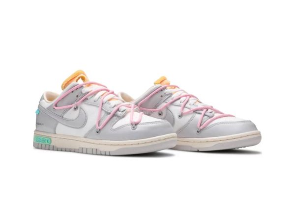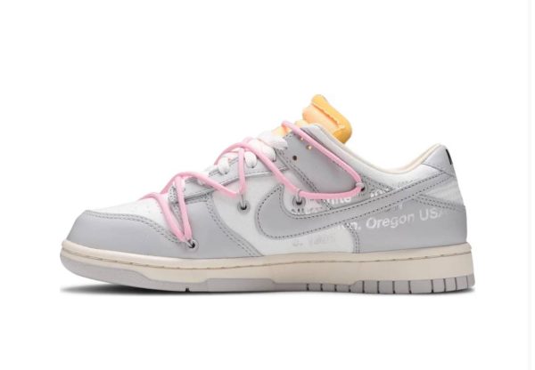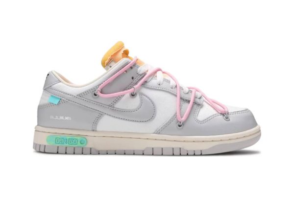 indicates that this specific pair is part of a limited edition release, with only 50 pairs available in this particular lot. The Pink Off-White x Dunk Low ‘Lot 09 of 50’ is not only a stylish and fashionable sneaker but also a collector’s item due to its limited availability and unique design elements.