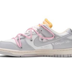 The Pink Off-White x Dunk Low ‘Lot 09 of 50’ is a highly sought-after sneaker collaboration between Nike’s Dunk Low silhouette and the fashion brand Off-White, designed by Virgil Abloh. This particular colorway features a predominantly pink upper with accents of white and other colors, creating a unique and eye-catching design. The ‘Lot 09 of 50’ designation